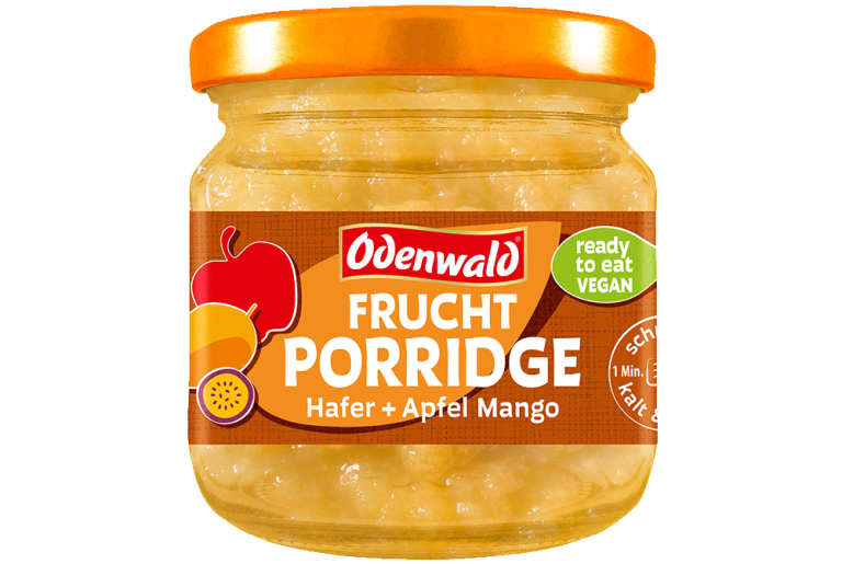 Der erste ready to eat Frucht Porridge! Lockere Haferflocken mit köstlichem Apfelmus und frischer Mango ist der optimale Begleiter für alle, die nicht nur zu Hause, sondern auch unterwegs etwas Gutes löffeln möchten. Die kurze Zutatenliste und die liebevoll ausgefeilte Rezeptur garantieren puren Genuss für große und kleine Genießer. Das Beste daran: Der Odenwald Frucht Porridge mit Hafer, Apfel und Mango ist sofort verzehrfertig, glutenfrei und vegan – einfach öffnen und genießen. So lecker, dass man ihn am liebsten immer dabeihaben möchte!